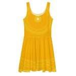• 82% polyester, 18% spandex • Fabric weight: 6.61 oz/yd² (224 g/m²) • Smooth and elastic fabric • Mid-thigh length flared skirt • Elastic waistline • Overlock seams, coverstitch hemline